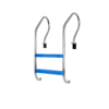 Escalera Vulcano 3 escalones. Posee laterales de acero inoxidable y peldaños plásticos. Incluye 2 anclajes y, según sus dimensiones, es ideal para ser colocada en profundidades que van desde 100 a 130 cm.